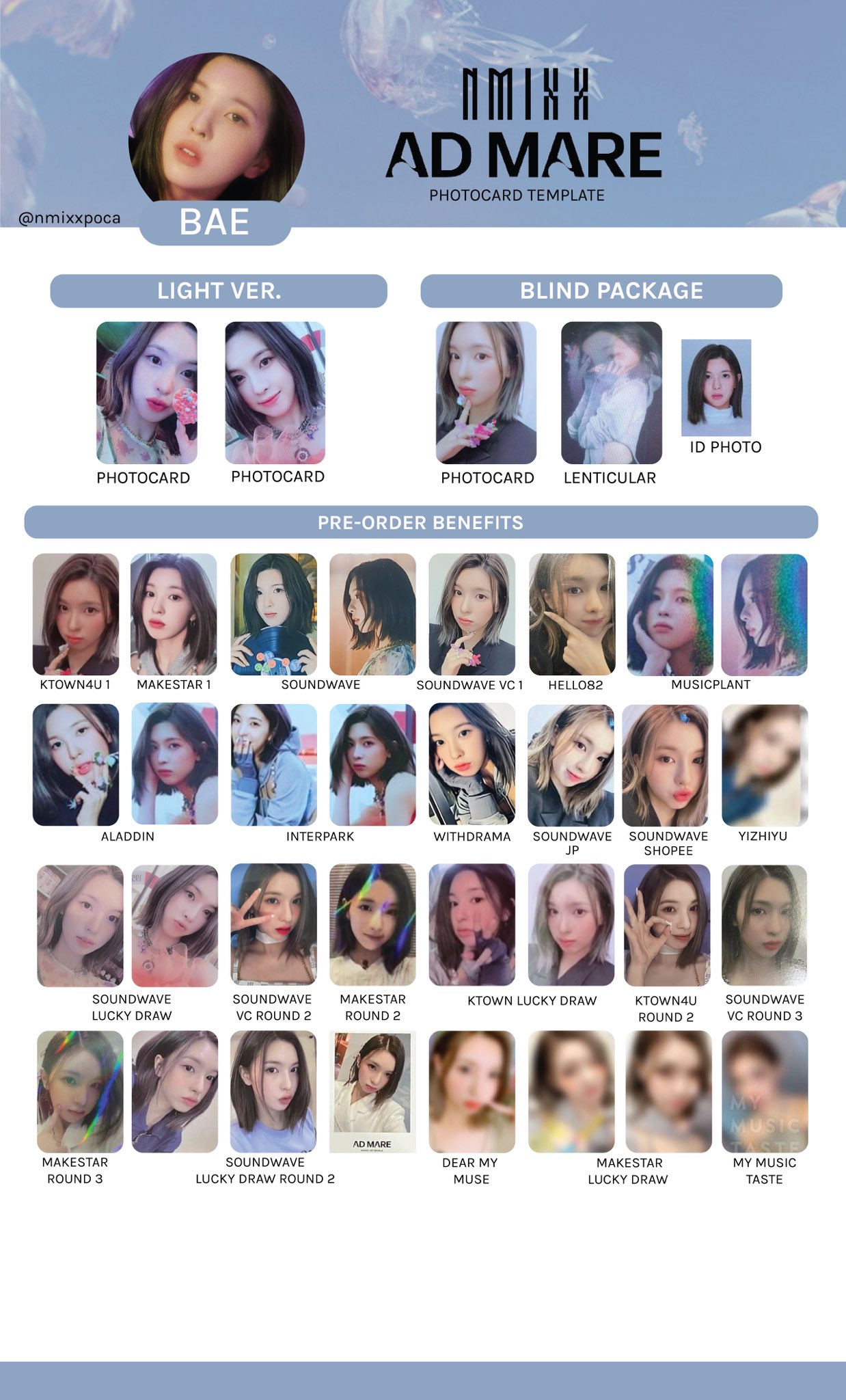 NMIXX BAE KOREAN ALBUM PHOTOCARD TEMPLATE Bae, Pop Collection, Kpop